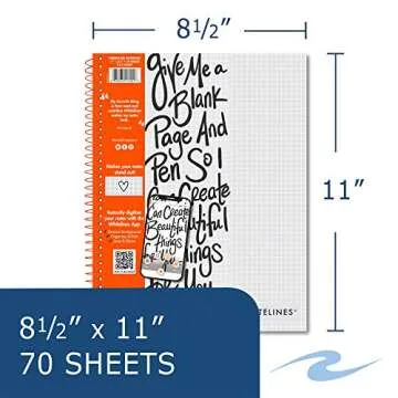 ROARING SPRING Whitelines Premium Spiral Notebook, 5x5 Graph Ruled, 11" x 8.5", 70 Sheets, Digitally Download Your Notes, Free App, Pack of 3