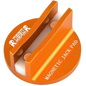 Robbor Jack Pad is made from high-quality aircraft-grade aluminum with a unique design that includes embedded magnets for secure holding strength, ensuring stability while lifting.