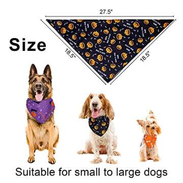 Roberly 3 Pack Halloween Dog Bandanas, Reversible Dog Halloween Bandana Cat Pumpkin Bat Bones Triangle Bibs Scarf Accessories Costumes for Small Medium Large Dogs Cats Pets Animals