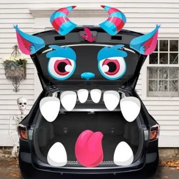 Show moreGet ready to transform your car into a spooky masterpiece with our Large Halloween Trunk or Treat Car Decorations Kit. This all-inclusive value package features playful monster-inspired decorations that will be the highlight of your Halloween festivities. Each kit includes 2 vibrant monster eyes, 2 adorable horns, 2 playful ears, 8 spooky fangs, 1 oversized nose, and 1 fun tongue, along with ample double-sided adhesive stickers for easy application. The bright colors and creative designs are perfect for bringing smiles to children's faces and adding a festive touch to your Halloween atmosphere.