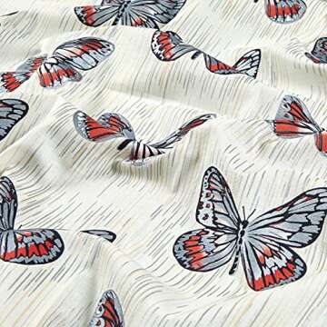 Show moreExperience the enchanting elegance of the Robert Kaufman Kaufman Spring Shimmer Butterflies White Fabric, designed by the talented Jennifer Sampou as part of the vibrant Spring Shimmer collection. This stunning cotton print features an array of butterflies delicately fluttering across a white backdrop, embodying the spirit of spring in every stitch. Crafted from 100% lightweight cotton, it boasts a fabric weight between 116-200 GSM, making it an ideal choice for a variety of uses—from intricate quilting projects to eye-catching home decor accents. Whether creating pillow covers, bed skirts, or engaging crafts, this fabric merges quality and creativity beautifully.