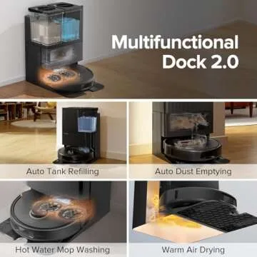 Show moreThe Roborock Qrevo Pro Robot Vacuum and Mop redefines home cleaning with its state-of-the-art design and features. Designed to tackle every type of dirt, whether embedded in carpets or just a sprinkle of fine dust on hardwood floors, the remarkable 7,000 Pa HyperForce Suction ensures that every inch of your home is left impeccably clean. The robot not only vacuums but also mops, thanks to its innovative hot water washing system that reaches temperatures of 140℉, helping to remove tough stains and sanitize the mop for your next cleaning session. With its reactive tech obstacle avoidance, it deftly navigates around furniture, ensuring a hassle-free cleaning experience. Plus, the intelligent dirt detection feature makes it even more effective, prompting the robot to rewash and mop areas that require extra attention.
