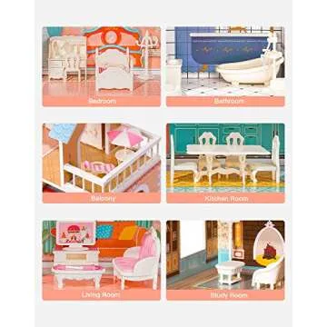 ROBOTIME Doll House Wooden Dollhouse for Kids 3 4 5 6 Years Old, Doll House w/28PCS Furniture Plastic, for 3.3”Dolls, Birthday Presents for Toddler 3+