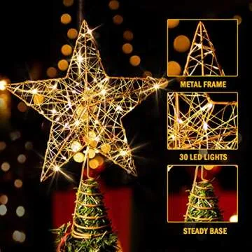Rocinha Gold Christmas Tree Lighted Wire Topper with 30 LED Lights, 10 Inches
