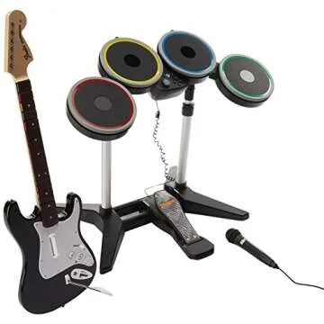 Show moreUnleash your inner rock star with the Rock Band 4 Band-in-a-Box Bundle for Xbox One. This all-inclusive package transforms your living room into a vibrant stage, offering an electrifying music experience that transports players into the heart of a live band performance. Equipped with the Wireless Fender Stratocaster Guitar, Wireless Drum Kit, and a Stage-Grade USB Microphone, this bundle is designed to provide you with everything needed to start your own band. Whether you're belting out classics or thumping the drums to your favorites, Rock Band 4 allows you to live out your rock fantasies in front of an enthusiastic crowd, making every jam session unforgettable.