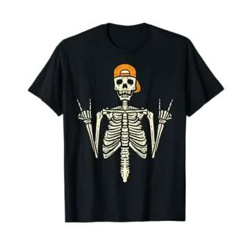 Show moreIf you’re searching for the perfect blend of style and comfort this Halloween, look no further than the Rocker Skater Skeleton Cap T-Shirt. This versatile t-shirt embodies the spirit of punk rock with its edgy skeleton design, making it an ideal last-minute costume for everyone from men to kids. Whether you’re taking your children trick-or-treating or attending a Halloween party, this shirt serves as an effortless way to showcase your spooky spirit without compromising on comfort. Made from lightweight material, it ensures maximum breathability during festivities while providing a classic fit that flatters any body type. Embrace the Halloween vibe with this distinctive tee that’s sure to become a favorite for years to come!