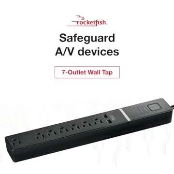 Rocketfish 7-Outlet/2-USB 2100 Joules Surge Protector Strip - Multiple-Outlet Extension Cord with Surge Protection - Power Strip with USB Ports - Travel & Home Extension Cord for Wall Outlets - Black