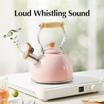 Show more Introducing the ultimate companion for tea enthusiasts - the Rockurwok Stovetop Tea Kettle! This beautifully designed 1.6 QT kettle not only elevates your tea-making experience but also adds a touch of elegance to your kitchen. With its solid wooden handle, ergonomically crafted for a cool touch, you never have to worry about burns while pouring hot water. The whistling feature of this kettle alerts you distinctly when your water reaches its boiling point, ensuring you can attend to other tasks without any worries.