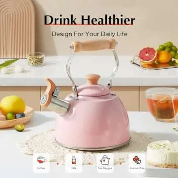 ROCKURWOK Tea Kettle, Tea Pot with Cool Touch Ergonomic Handle, Tea Kettle Food Grade Stainless Steel, Tea Kettle Stovetop, Kettle Teapot, Whistling Tea Kettle, Small Tea Kettle, 2.7 Quart (Pink)