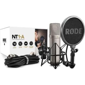 Show more The Rode NT1-A Complete Vocal Recording Solution combines state-of-the-art technology with unparalleled audio performance, making it the ultimate choice for vocalists and podcasters looking to elevate their recordings. Equipped with a cardioid polar pattern, the NT1-A effectively isolates the sound source, capturing rich and detailed vocals while minimizing background noise and ambient sounds. The large 1" diaphragm ensures a wide frequency response range, allowing for exceptional clarity and depth in your recordings. This kit doesn't just stop at the microphone; it also features a 48V phantom power supply to enhance the microphone's performance beyond expectations. Coupled with a quality acoustic reflection filter, this package significantly reduces unwanted sound reflections, providing a professional studio-like atmosphere in any home recording space.