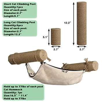 Featuring a space-saving design, this set allows you to utilize walls, corners, and even ceilings efficiently. Designed specifically for energetic felines, it provides ample play space without cluttering your living area. Cats can indulge in their natural behaviors such as stretching and scratching while enjoying their own high perches. The hammock is crafted from soft cotton material that offers both comfort and breathability, ensuring your cat has an inviting spot to relax after playtime.