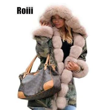 The Roiii Women Military Winter Casual Outdoor Coat is your ultimate companion for the cold months ahead. Designed in a chic army green, this trench coat offers a stylish yet practical solution for winter wardrobes. Constructed with a luxurious beige faux fur lining and a matching faux mink fur collar, this coat not only ensures warmth but also elevates your outdoor fashion game. Featuring a long trench coat style that can be comfortably fastened with buttons, and equipped with two side pockets, this jacket...
