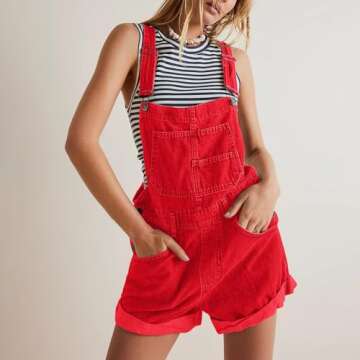 With a chic red hue, these Jean Romper and Denim Overall Shorts stand out in any setting. The inclusion of practical pockets adds functionality—you can effortlessly carry essentials without compromising style. Whether you’re enjoying a day at the park or tackling errands around town, these overalls adapt to your needs.
