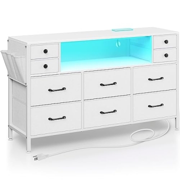 Show more Introducing the Rolanstar Dresser for Bedroom —the ultimate fusion of style and functionality! This modern dresser not only serves as an elegant addition to your room but also enhances your daily lifestyle with its renowned features. The standout aspect of this dresser is its integrated LED lighting system, featuring over 60,000 DIY colors, allowing you to customize your space's ambiance effortlessly through a remote or mobile app. You'll also love the built-in power outlets—two AC, two USB ports, and one Type-C—making charging your devices easier than ever, so you can say goodbye to messy cords and extension cables!