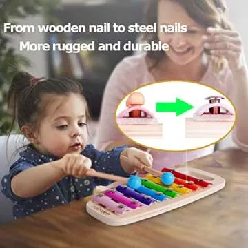 Show moreIntroducing the Rolimate Hammering & Pounding Toys – the ultimate 4-in-1 educational tool that transforms playtime into a captivating learning experience! This innovative wooden toy combines a colorful 8-note xylophone, a shape sorter, and a classic hammer-and-pounding function to stimulate your child's auditory, tactile, and cognitive development. Designed specifically for infants and toddlers aged 1 to 3 years, each component leverages the power of play to foster crucial skills in sound recognition, shape and color identification, and fine motor abilities. Crafted from premium, non-toxic materials, this toy guarantees safety while providing endless fun!