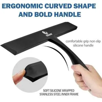ROLIZOE Shower Squeegee for Shower Doors with Bold Handle, 11" Anti-Rust Silicone Shower Squeegee for Shower Glass Door with Stainless Steel Inner Frame, Ergonomics All-Purpose Window Squeegee-Black
