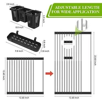 Show moreTransform your kitchen experience with the Roll Up Dish Drying Rack, designed for convenience and efficiency. This innovative kitchen accessory is an exquisite blend of functionality and modern design. Crafted from premium stainless steel, it is not only durable but also resistant to rust and corrosion. Spanning up to 23 inches, this expandable and collapsible rack fits seamlessly over most sinks, providing a versatile drying solution for your dishes, pots, and utensils. With two included utensil holders, keeping your kitchen organized and tidy has never been easier.