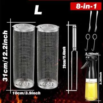 Show more Transform your grilling game with the Rolling Grilling Baskets – the ultimate tool every BBQ enthusiast needs! Crafted from premium stainless steel, these large, round mesh baskets are not just a cooking accessory; they are a culinary revolution. Designed to accommodate everything from shrimp to veggies and even larger cuts of meat, each basket promises an efficient grilling experience without the worry of losing small items to the flames. With dual lids on both ends, the innovative design keeps your ingredients secure and flavor locked in, ensuring your dishes are always juicy and delicious.