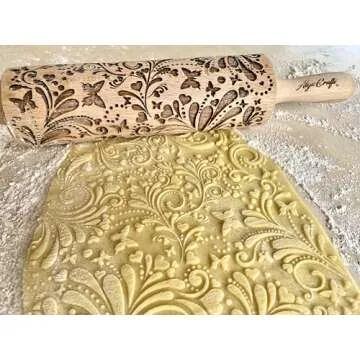 ROLLING PIN SPRING WOODDEN EMBOSSING ROLLING PIN with BUTTERFLIES and FLOWERS EMBOSSED COOKIES GIFT FOR MOTHER FRIEND