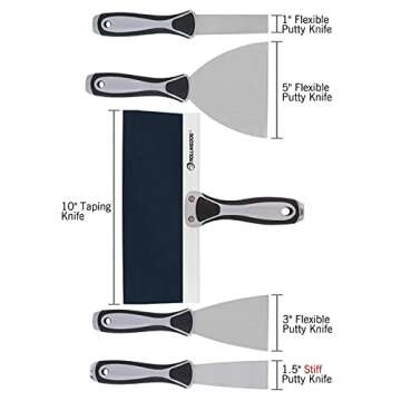 Why You Will Love This Product?Embrace the confidence that comes with reliable tools! The ROLLINGDOG Putty Knives Set empowers you to tackle any wall repair with ease. Its comfort grip and diverse blade sizes allow for seamless transitions between tasks. You'll be amazed at how effortlessly you can create smooth finishes, making renovations less daunting and more achievable. This is not just a toolset; it’s a step towards making your home repairs hassle-free and professional-looking.