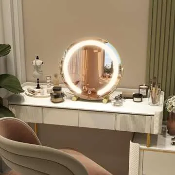 Show moreIf you're in search of a mirror that combines elegance with functionality, look no further than the ROLOVE Gold Vanity Mirror. This stunning mirror measures a perfect 12 inches in diameter, providing an optimal size for skincare and makeup application. With its mesmerizing circular shape and beautiful gold accents, this mirror not only complements any decor but also eliminates shadows for an even, consistent light distribution. The premium brushed gold finish speaks volumes of its high-grade artistry, making it a striking piece for your vanity or dresser.