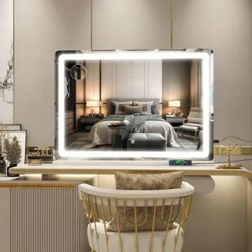 Show more Transform your beauty routine with the ROLOVE Vanity Mirror with Lights, a stunning 32" x 22" lighted vanity mirror that redefines your makeup application experience. Designed with both functionality and elegance in mind, this mirror provides ample viewing space to ensure you can see your entire face from every angle, making it an essential addition to your makeup collection. The robust build and premium materials not only demonstrate strength but also contribute to an exquisite aesthetic that's sure to enhance any room's decor.