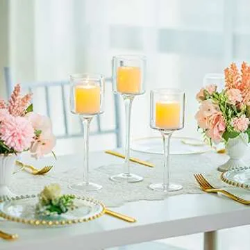 Romadedi Set of 3 Glass Candle Holders - Elegant Wedding Centerpieces