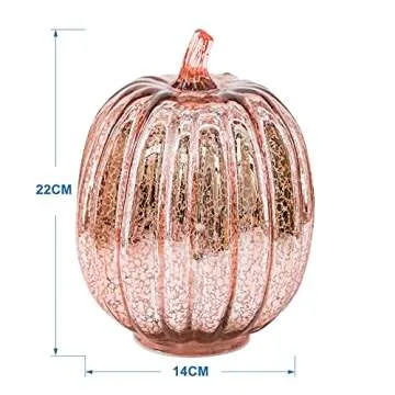 Romingo Mercury Glass Pumpkin Light with Timer for Halloween Pumpkin Decorations Fall and Thanksgiving Decor, Rose Gold, 7.5 inches