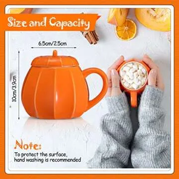 Show moreIntroduce a touch of autumn charm to your kitchen with the **Romooa 2 Pieces Fall Pumpkin Mug with Lid**. These delightful mugs come in two elegant colors: a vibrant orange and a classic black, designed to enhance any festive occasion. Made from high-quality ceramic, these mugs are as durable as they are charming. Each mug showcases a cute pumpkin shape, perfectly capturing the essence of fall. With a capacity of 300 ml (10 oz), they are ideal for a variety of drinks from your morning coffee to cozy hot chocolate. Whether you're enjoying a chilly evening or hosting a seasonal gathering, these mugs are sure to become your go-to favorites.