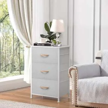 Equipped with three spacious fabric drawers, you can effortlessly arrange socks, underwear, shirts, and more. The top wooden panel is sturdy enough to support your favorite lamps, clocks, and books, ensuring that your items are both organized and beautifully displayed. Built to last, its premium metal frame and long-lasting MDF wood top provide exceptional stability.
