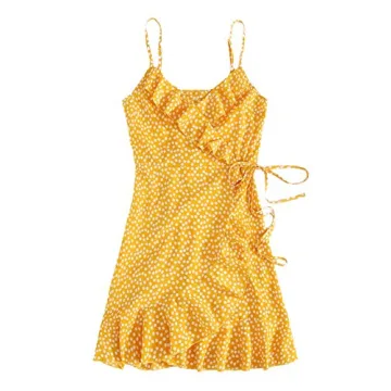 Show moreExperience the perfect blend of comfort and style with the Romwe Women's Boho Floral Sundress. This charming sundress, featuring spaghetti straps and a delightful V-neck design, is ideal for sunny days, beach outings, or casual brunches. Made with an emphasis on breathable fabric, this sundress will keep you feeling fresh and fashionable, while the vibrant yellow hue adds a touch of sunshine to your wardrobe. With its ruffle accents and tie knot detailing, this dress effortlessly combines boho chic with modern elegance, ensuring you’ll turn heads wherever you go.