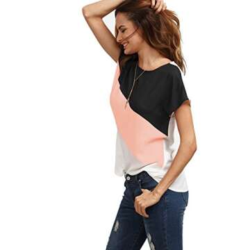 This versatile piece features a chic colorblock design that effortlessly combines fashion and function. With its breathable fabric, it ensures you stay cool and comfortable all day long. The short sleeves provide a relaxed vibe, while the round neck adds a touch of elegance, allowing for easy pairing with a variety of bottoms, including jeans, shorts, and skirts.