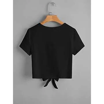 Why You will Love This Product? You will adore the Romwe Women's Knot Front Top for its effortless ability to elevate your everyday look. Its stylish silhouette not only brings confidence but also allows for endless outfit combinations. Whether you're dressing it up for a night out or keeping it casual for a day at the park, this crop top enhances your style while providing comfort and ease, making it a delightful staple in any modern woman's wardrobe.