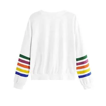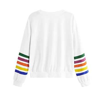 Romwe Women's Loose Casual Long Sleeve Rainbow Print Pullover Sweatshirt Top White S