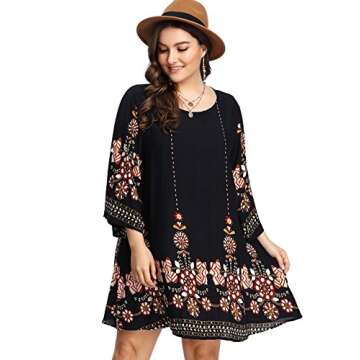 ROMWE Women's Plus Size Boho Bohemian Tribal Print Summer Beach Dress Navy Boho 2X