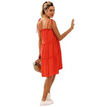 Show more Introducing the ultimate summertime essential, the Romwe Women's Sleeveless Spaghetti Strap Tiered Layer Frill Knot Loose Summer Cami Dress in a vibrant orange hue. Designed with style and comfort in mind, this dress is perfect for warm, sunny days, allowing you to embrace your playful side while keeping cool. The lightweight fabric ensures breathability, making it a great choice for beach outings, picnics, or casual brunches. With its unique tiered layer design and delicate frill detailing, this dress beautifully flatters various shapes and sizes, giving you both elegance and comfort.