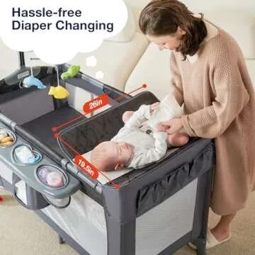 RONBEI 4-in-1 Baby Bedside Sleeper Playpen with Changing Table - Portable Crib