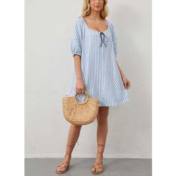 Show more Introducing the RONGCAT Women Striped Summer Dress, the ultimate blend of style, comfort, and versatility for the summer season and beyond. Crafted from high-quality opaque fabric, this casual puff sleeve mini dress is designed to be lightweight, breathable, and oh-so-soft against the skin. It boasts remarkable durability without shrinking or fading, ensuring it remains a staple in your wardrobe for years to come. With its unique blend of functionality and fashion, this dress features two convenient side pockets, allowing you to carry your essentials easily while on the go.