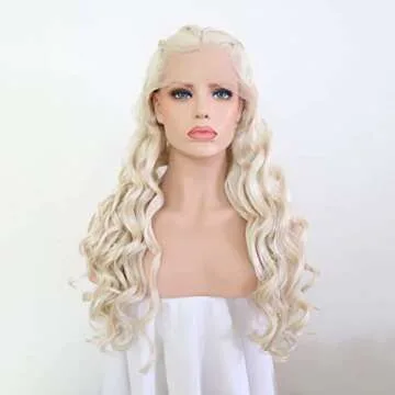 RONGDUOYI 26" Cosplay Braiding Hair Style Wig Blonde Body Wave Synthetic Lace Front Wig with Six Plaits Pre Plucked Glueless Halloween Cosplay Party Wigs