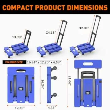 Show moreIntroducing the Ronlap Folding Hand Truck, your ultimate solution for heavy lifting and moving with ease. Crafted for convenience, this foldable moving dolly cart is designed to support loads up to an impressive 500 lbs, making it perfect for various tasks—from relocating furniture to managing luggage during travel. The no-tool wheel installation sets it apart; simply push the wheels into place, and you're ready to go! Its capacity for compact storage, folding down to a mere 16.34" x 12.20" x 4.53", means this lightweight (only 8.6 lbs) cart can fit almost anywhere, allowing you to carry it effortlessly wherever you need it.