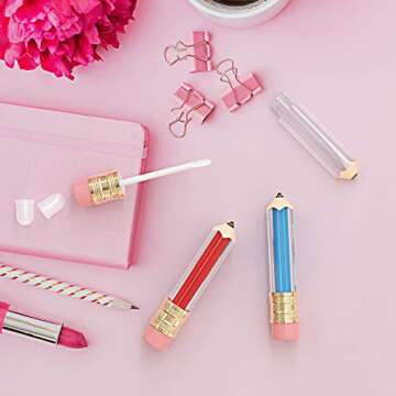 RONRONS 12 Pieces Pencil Lip Gloss Tubes, Empty Mini Pencil Shaped Lip Gloss Tubes Containers Clear Lip Balm Tube Plastic Refillable Bottle for Women Girls Gifts, 5ml