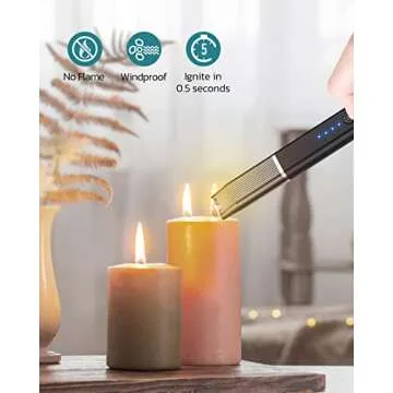 RONXS Electric Lighter, Candle Lighter with Safety Lock Windproof Flamless Arc Rechargeable Long Lighter with Battery Indicator
