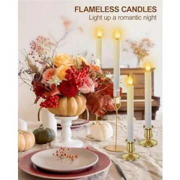 Show more Illuminate your home with the stunning Ronxs Flameless Candles, a captivating addition to enhance any decor. These beautiful LED taper candles combine safety, convenience, and elegance to create an atmosphere of warmth and cheer. Designed with a remarkable 16.4-foot range remote control, you can effortlessly adjust the settings without ever moving from your cozy spot. The timer feature allows for easy scheduling in 2-, 4-, 6-, and 8-hour increments, cycling every 24 hours, so your candles will shine brightly when you need them most.