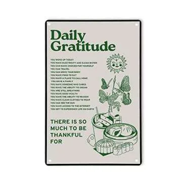 Room Decor Aesthetic Wall Decor Daily Gratitude Inspirational Metal Tin Sign, Green Boho Home Coffee Room Wall Office Decor 8X12Inch New