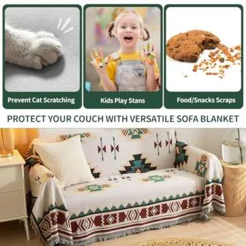 ROOMLIFE Reversible Two-Sided Knitted Sofa Covers Bohemian Couch Cover Blanket Universal Sofa Slipcover Couch Cover for Dogs,71"X 102"
