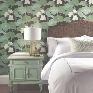 RoomMates Lily Pad Peel and Stick Wallpaper, Black/Green - Easy to Apply and Remove