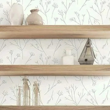 RoomMates RMK11677WP Gray and White Twigs Peel and Stick Wallpaper