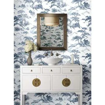 RoomMates RMK11754RL Blue and White Oriental Toile Peel and Stick Wallpaper