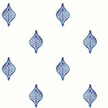 RoomMates RMK12247PLW Watercolor Foulard Peel and Stick Wallpaper, Blue, White