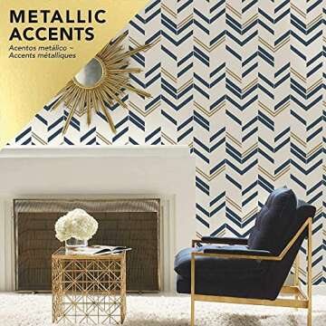 RoomMates RMK9002WP Blue and Metallic Gold Chevron Stripe Peel and Stick Wallpaper, 20.5" x 16.5 feet